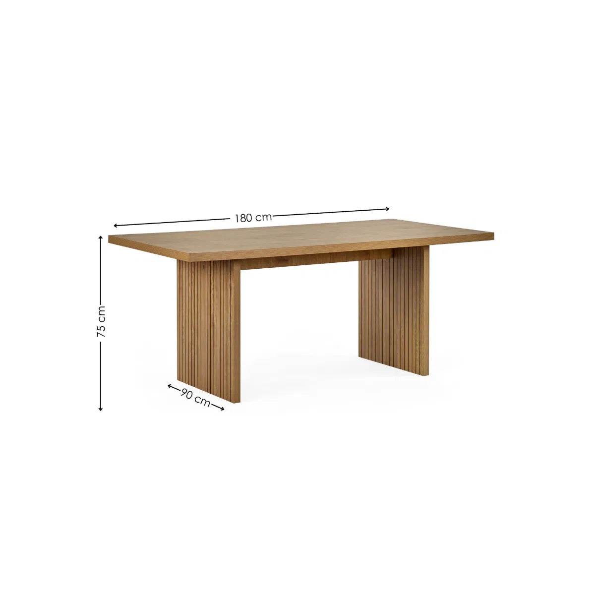 Dine in style with this bold rectangular table that brings a fresh, modern feel to your space. The light oak effect finish adds warmth, while the wide slatted legs are accented with slim black lines for a touch of contrast and character. Generously sized to seat six comfortably, it's ideal for everything from quick breakfasts to relaxed get togethers. Assembly required. Chairs sold separately.