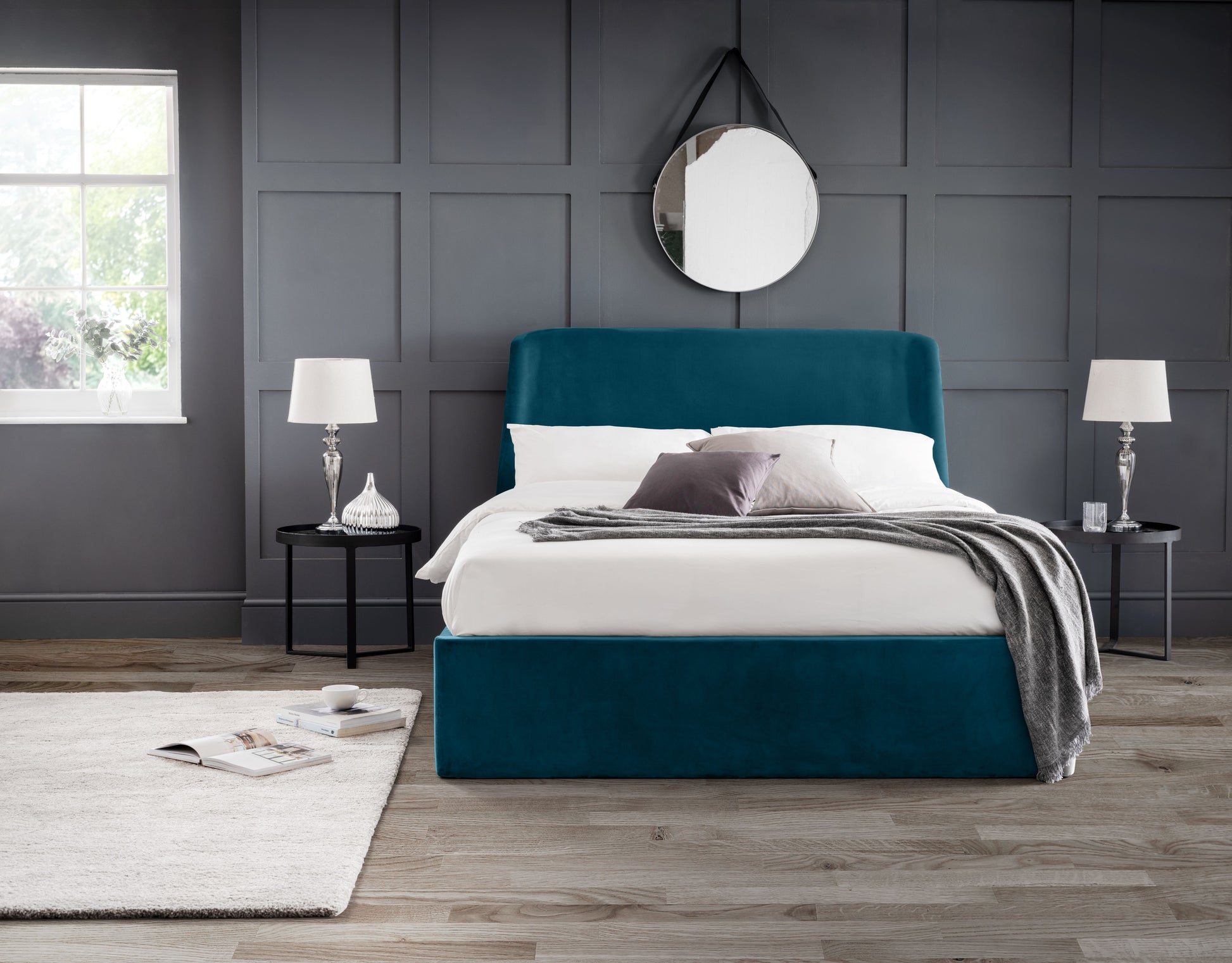 Featuring a gorgeous, curved headboard, the Frida bed exudes elegance and comfort. The black contrasting legs paired with the smooth velvet gives a modern look – and is likely to be the statement piece in any bedroom. Available in two beautiful shades of teal and grey.