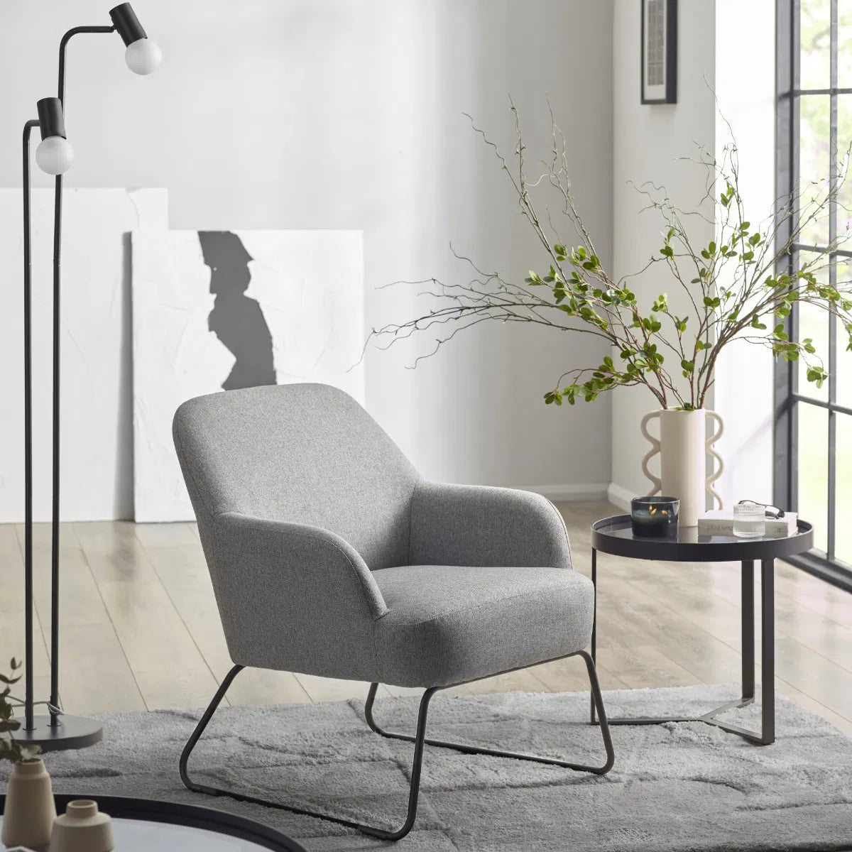 Unwind in style with the Davos Accent Chair, where retro charm meets contemporary comfort. Angled perfectly for a relaxed, reclined seating position, this beautifully designed chair is the ideal spot to kick back after a long day. Its sleek black sled base offers a contemporary twist, combining stability with sleek style, while the plush padding on the arms ensures hours of luxurious lounging. Upholstered in sumptuous grey fabric, the chair effortlessly complements any living area, making it a versatile addition to your decor. Whether you’re curling up with a good book or entertaining guests, this accent chair is the perfect blend of comfort and sophistication, ready to elevate your home. Requires simple assembly for your convenience.