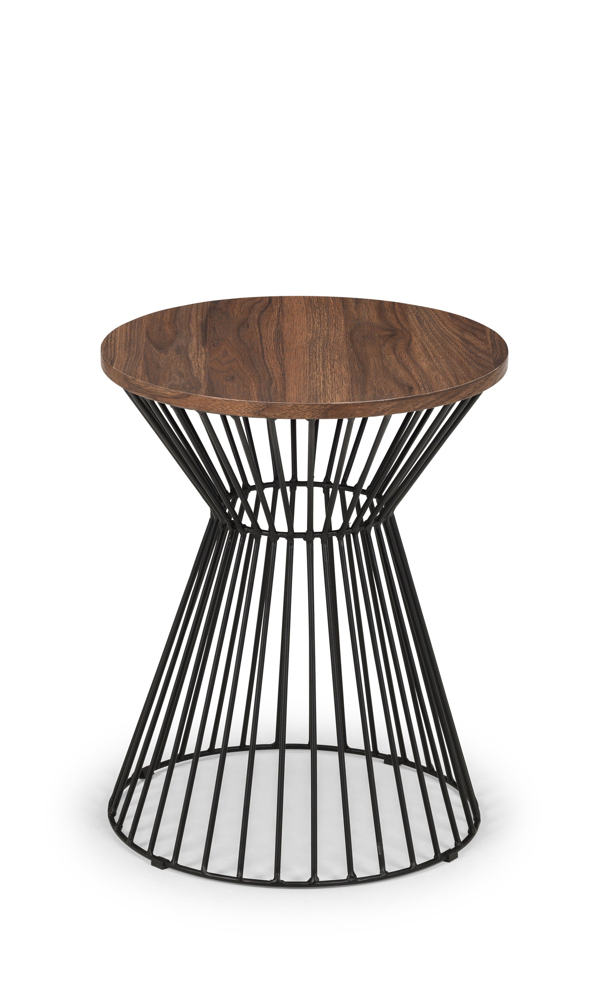 The Jersey Lamp Table will add a contemporary addition to any living area. Featuring a black wire frame with a fixed round walnut effect top, this lamp table creates a striking industrial feel with a classic contrast.