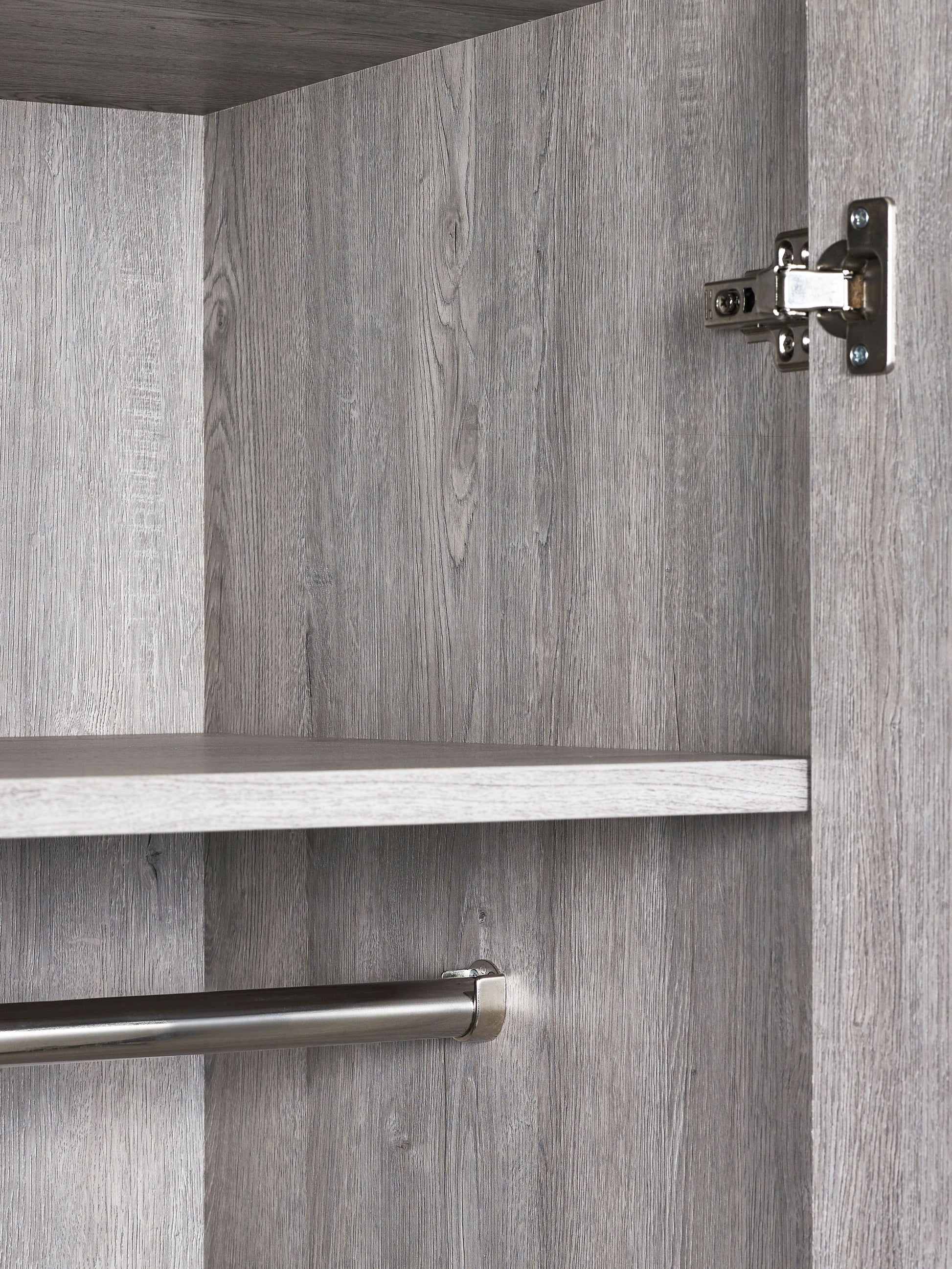 Using revolutionary click furniture technology, the Bali collection combines high quality style with simple assembly. With a modern oak finish and contrasting black legs and handles, the Bali collection creates a classic industrial look in your bedroom – leaving you with a high-quality interior, with low maintenance upkeep. This collection includes: 1 drawer bedside, 2 drawer bedside, 4 drawer chest, 6 drawer wide chest, dressing table/desk, wardrobe, and bookcase bed. All items are available in Oak and Grey Oak.