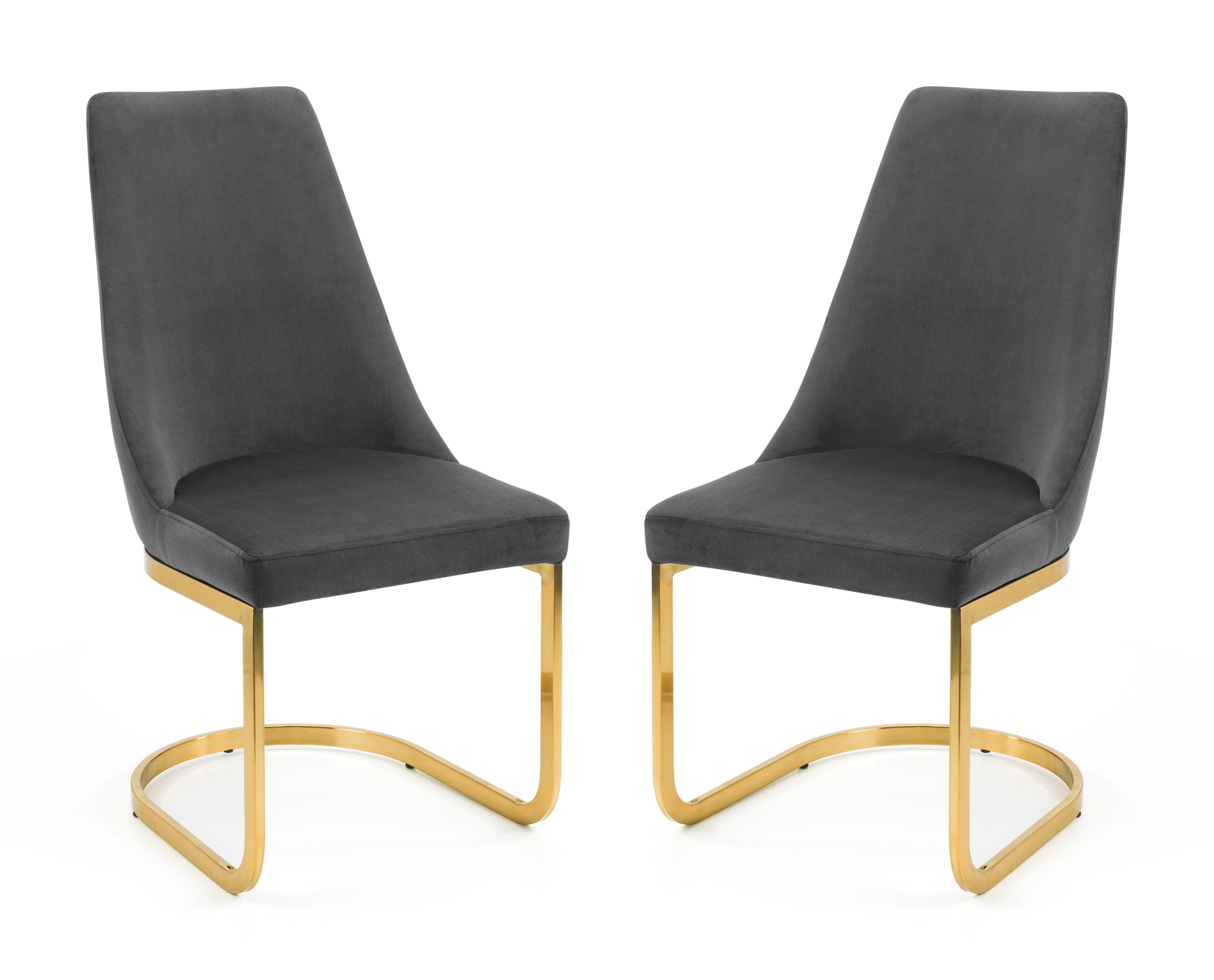 The Vittoria Cantilever chair brings sophistication and class to your home. With a golden U-shaped base and elegant velvet upholstery – this chair provides a classic touch to any dining area. The solid metal base adds great stability whilst the high backrests are supportive and comfortable. Available in grey or blue.